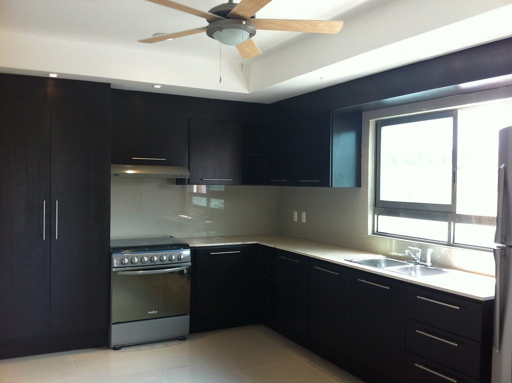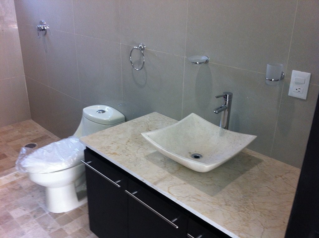 Residencia (1) en Fracc. Punta Tiburón, Riviera Veracruzana: Con 3 recamaras, area de tv y alberca con terraza en el jardin; se utilizó piso de marmol travertino natural para todas las areas; la cocina es abierta tipo barra y la sala comedor se integra al exterior. La recamara principal tiene vista a la alberca y cuenta con tina independiente de la regadera.